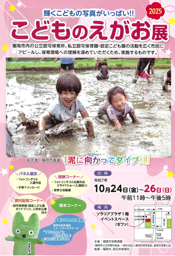 福岡市内の公立保育所、私立保育園の活動を広くアピールし、保育園への理解を高める目的で毎年秋に開催されている「こどものえがお展」。開催に先立ちフォトコンテストが行われ、そこで入選した作品が会場に展示され...続きを読む